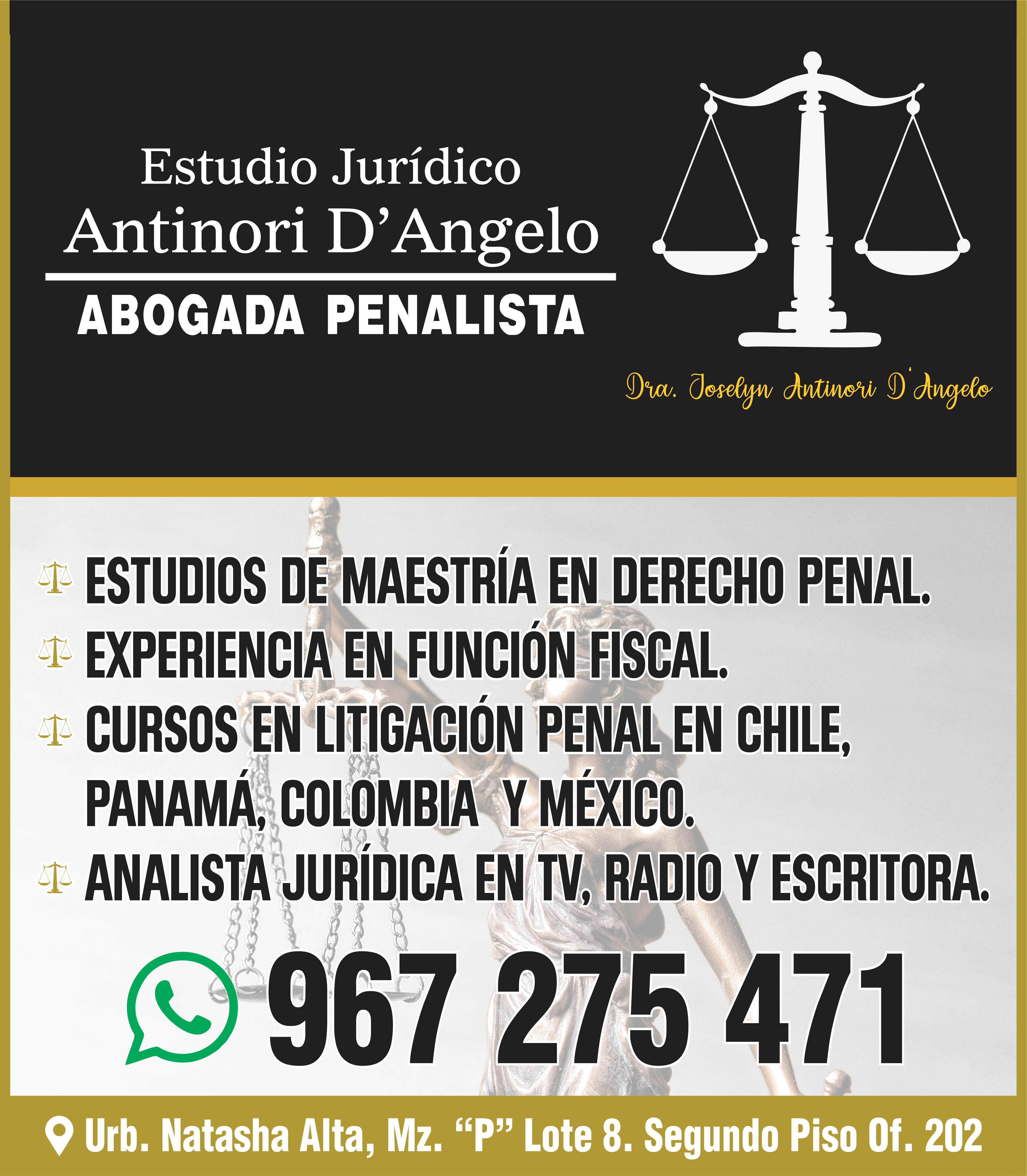 Estudio Jurídico Antinori D’Angelo Open 0.0 0 Ratings Servicios Profesionales Urb. Natasha Alta, MZ. P Lote 8. 2do piso Oficina 202 (A lado del Poder Judicial) - Trujillo 959 349 431 Watch Video Add Review Bookmark Compartir Compartir: Descripción Asesoría Legal. Video Gallery Close Ubícanos Get Directions Urb. Natasha Alta, MZ. P Lote 8. 2do piso Oficina 202 (A lado del Poder Judicial) - Trujillo 959 349 431 abogadosantinori@gmail.com Contáctanos Consulta Email Mensaje Enviar