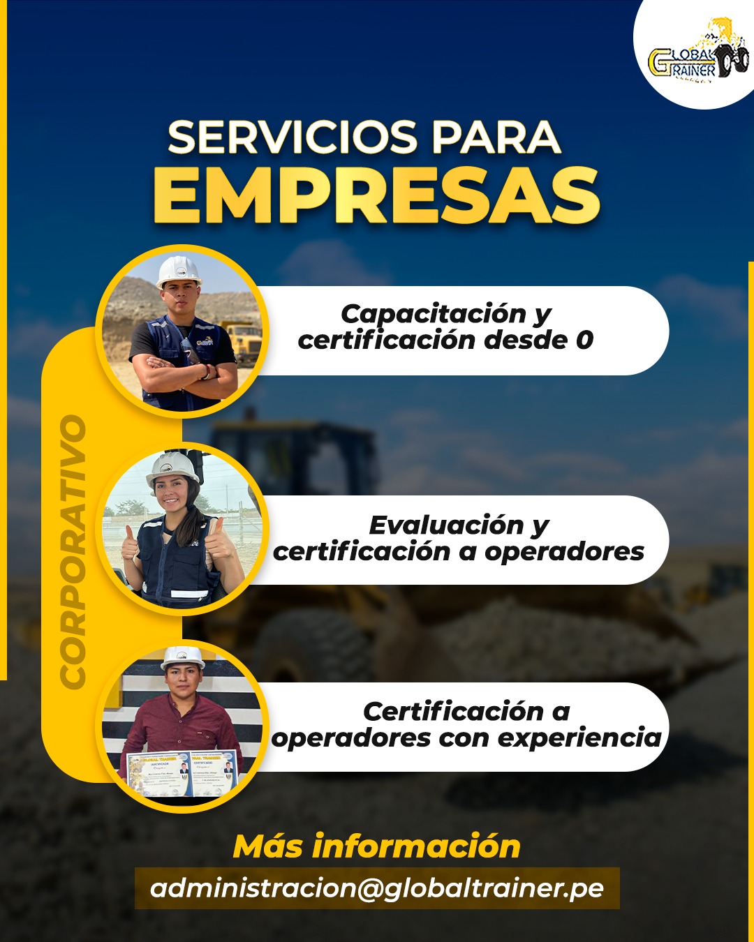 Somos una empresa líder en la capacitación de Operadores de Maquinaria Pesada, aseguramos que nuestro servicio educativo cumpla con las exigencias, requerimientos y estándares de calidad que las empresas necesitan en estos momentos.